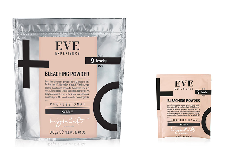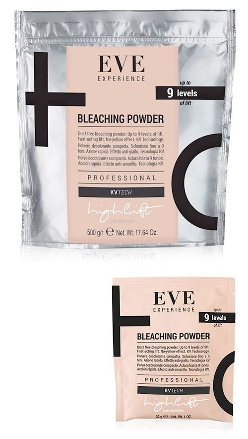 EVE innovative formula is able to withhold the ammonia and release it gradually during the bleaching service, allowing to achieve a high lift with lower percentage of ammonia than other classical bleaching powders.This system assures a comfortable experience for both, client and hairdresser, reducing undesirable ammonia smell. Enriched with KV Technology, EVE bleaching powder allows the maximum lift without sacrificing hair quality.