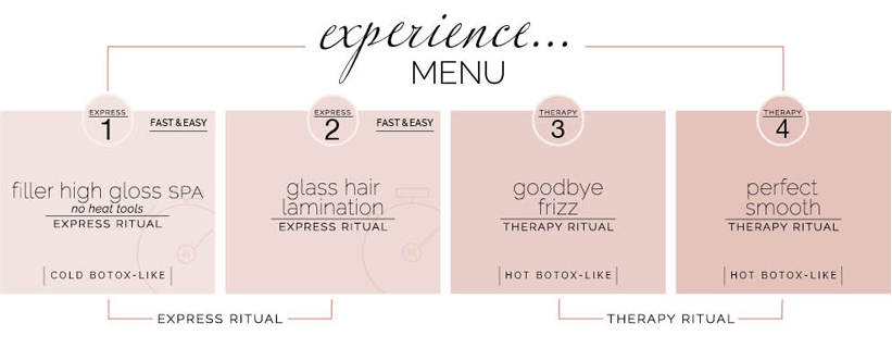 smooth EXPERIENCE is a versatile collection of 6 highly performing products designed to create 4 different beauty rituals: FILLER HIGH GLOSS SPA, GLASS HAIR LAMINATION, GOODBYE FRIZZ PERFECT SMOOTH.