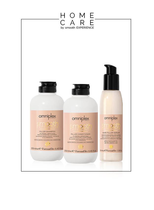 smooth EXPERIENCE es una colección versátil y profesional compuesta por 6 productos de alto rendimiento, para realizar 4 rituales diferentes de belleza capilar: FILLER HIGH GLOSS SPA, GLASS HAIR LAMINATION, GOODBYE FRIZZ y PERFECT SMOOTH.